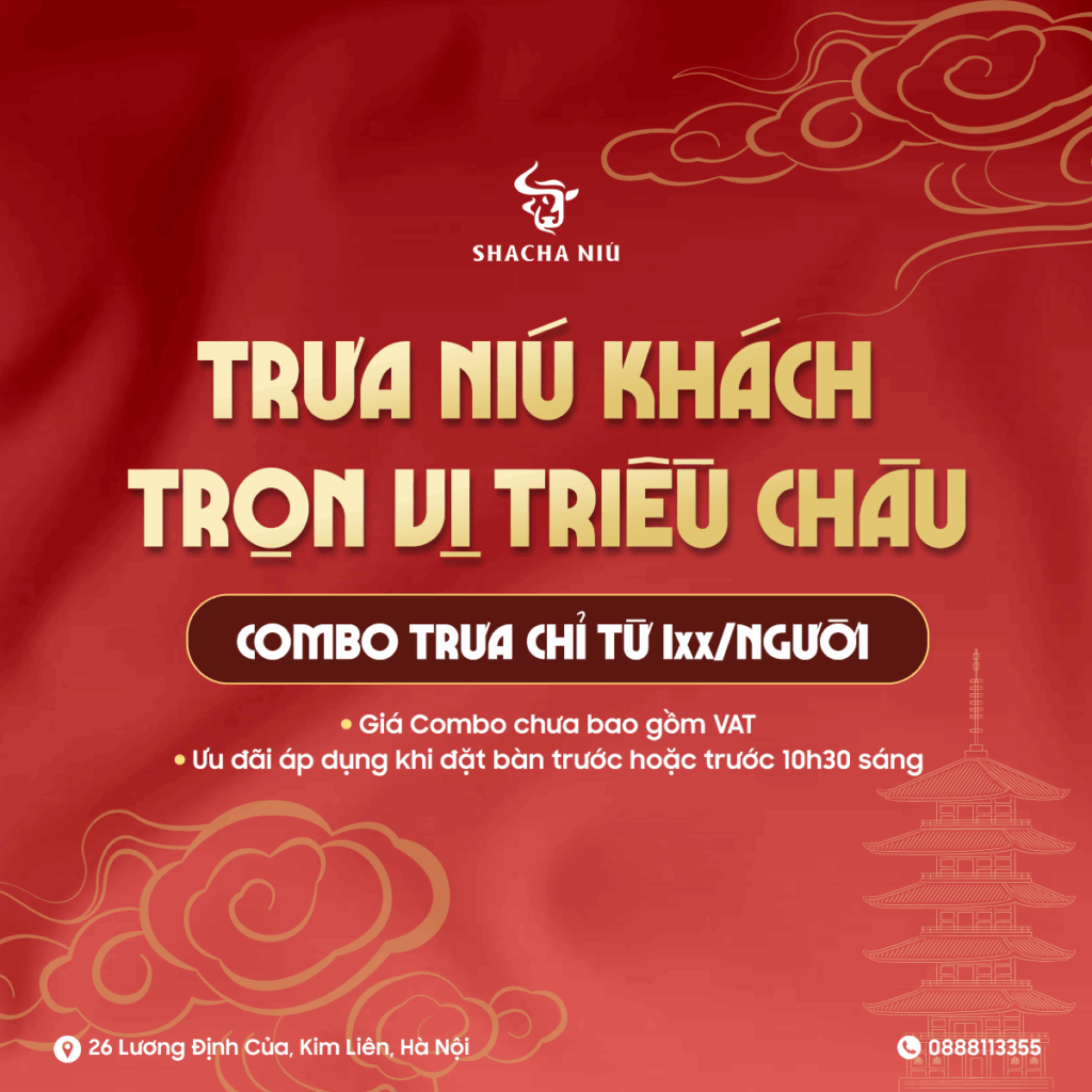 Trong nhịp sống hối hả nơi đô thị, quỹ thời gian nghỉ trưa của dân văn phòng thường chỉ gói gọn trong 60 phút. Đây vừa là khoảng thời gian để nạp năng lượng, vừa để tái tạo tinh thần cho buổi làm việc buổi chiều. Tuy nhiên, tìm được một bữa ăn vừa ngon – nhanh – đủ chất lại không phát sinh chi phí ẩn không hề dễ dàng. Hiểu được nhu cầu đó, Shacha Níu mang đến combo trưa văn phòng – lựa chọn tối ưu cho dân công sở quanh khu Lương Định Của và khu vực trung tâm Hà Nội.