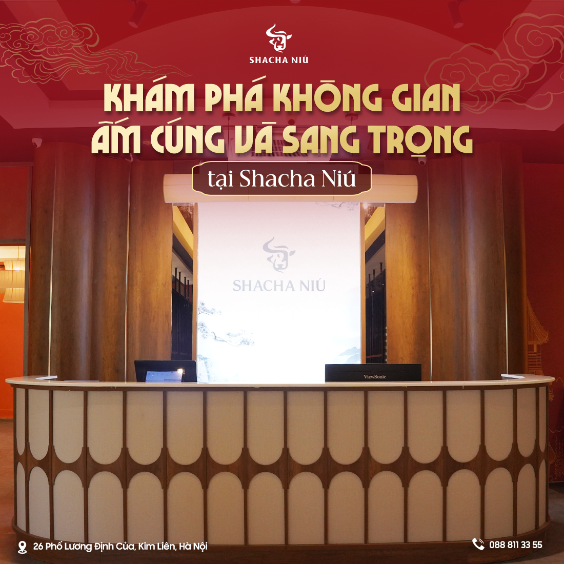 Shacha Níu không chỉ là nơi để thưởng thức lẩu bò tươi Hà Nội mà còn là một hành trình trải nghiệm văn hóa ẩm thực Triều Châu thu nhỏ. Không gian nhà hàng được thiết kế tinh tế, mang dáng dấp tiểu cảnh Á Đông, giúp thực khách vừa ăn vừa tận hưởng không khí ấm cúng, sang trọng.
