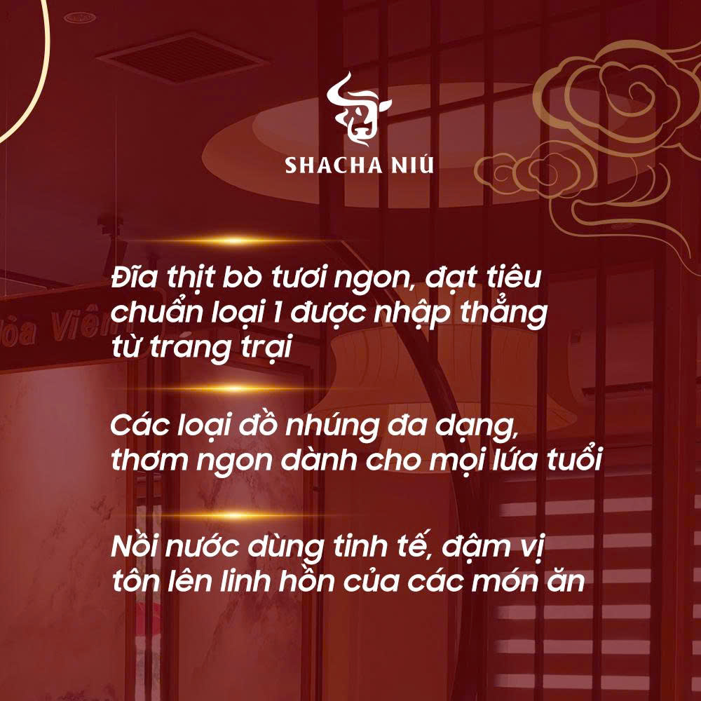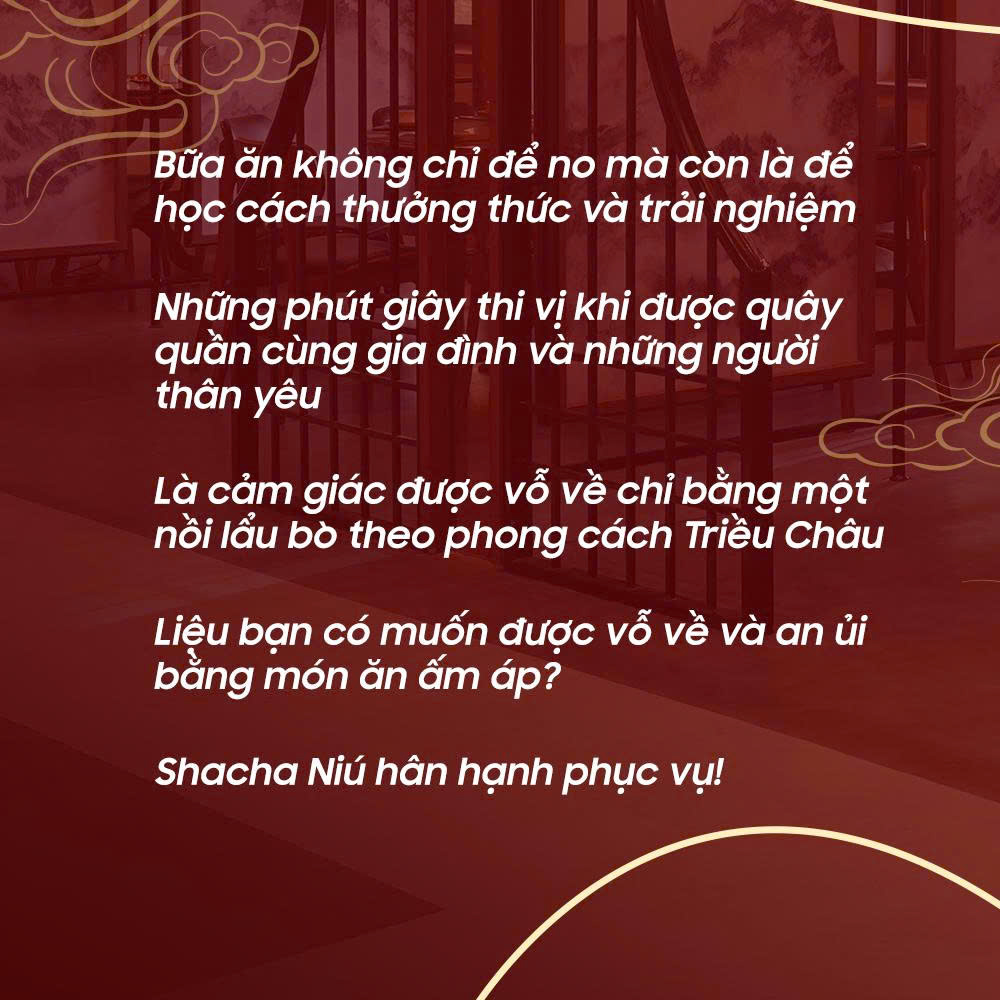 Trải nghiệm tại Shacha Niú, khách hàng không chỉ cảm nhận độ tươi ngon trong từng miếng bò, mà còn chạm đến tinh hoa ẩm thực Triều Châu, được tái hiện qua từng lát cắt. Đó cũng chính là sứ mệnh Shacha Niú: lan toả phong cách thưởng thức ẩm thực tinh tế và giàu bản sắc.